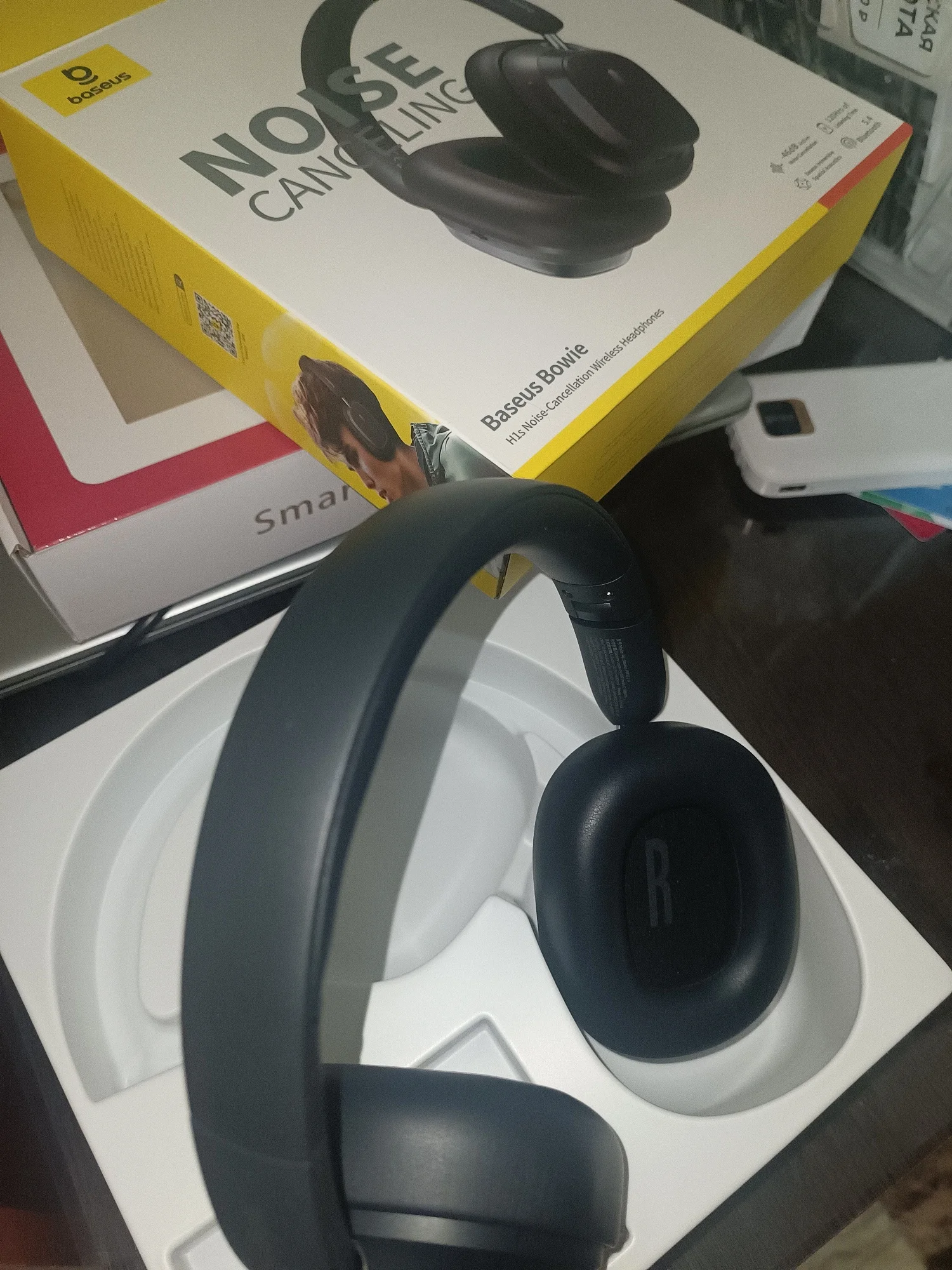 Fast delivery, 9 days. The price (1500 rubles) at this hour is excellent compared to the Russian Federation. The sound is okay, the bass is terrible. The battery holds up perfectly. The box arrived intact, packed perfectly. But. After 3 minutes in my hands, the outer earphone cover fell off. Or maybe they hit it well somewhere or it was defective from the start. They dragged the screws under the ear pads, and the plastic burst. Glue moment to help. Opened a dispute. Within an hour, they returned 1000 rubles.